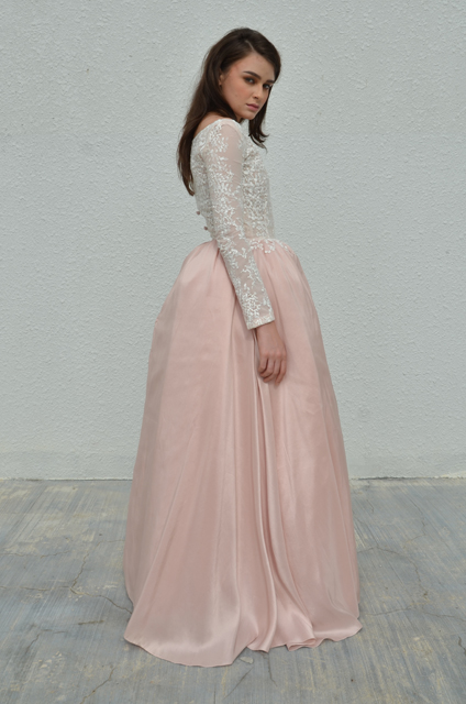 Chic Chantilly Lace Ball Gown Featuring Layers of shantung, with Beaded and Embroidered Appliqués.