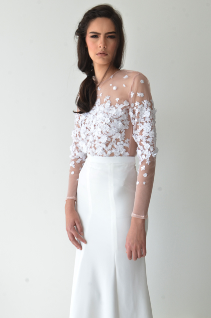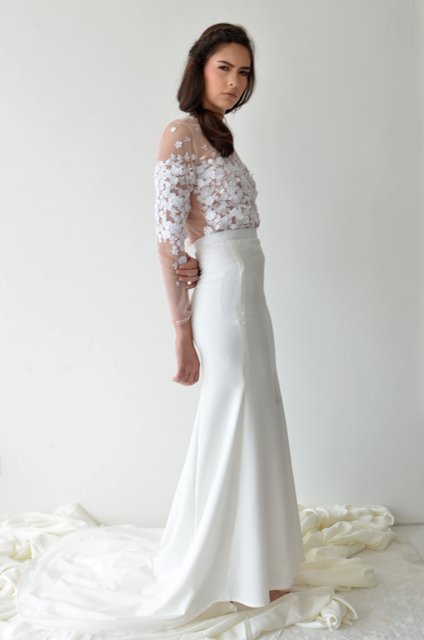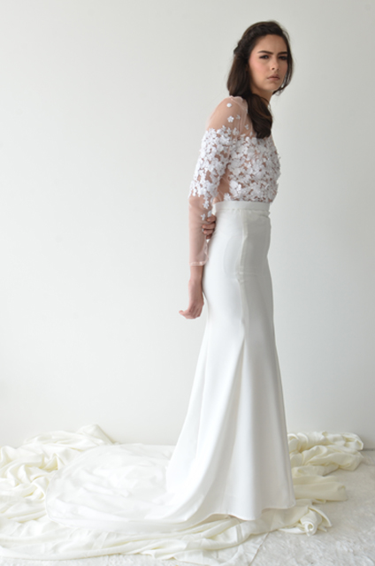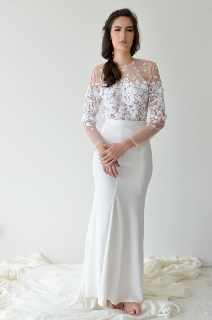 The Iris, attributes of effortlesness and sensuality are coveyed in particular by the use of filigree materials such as high quality net and chiffon.