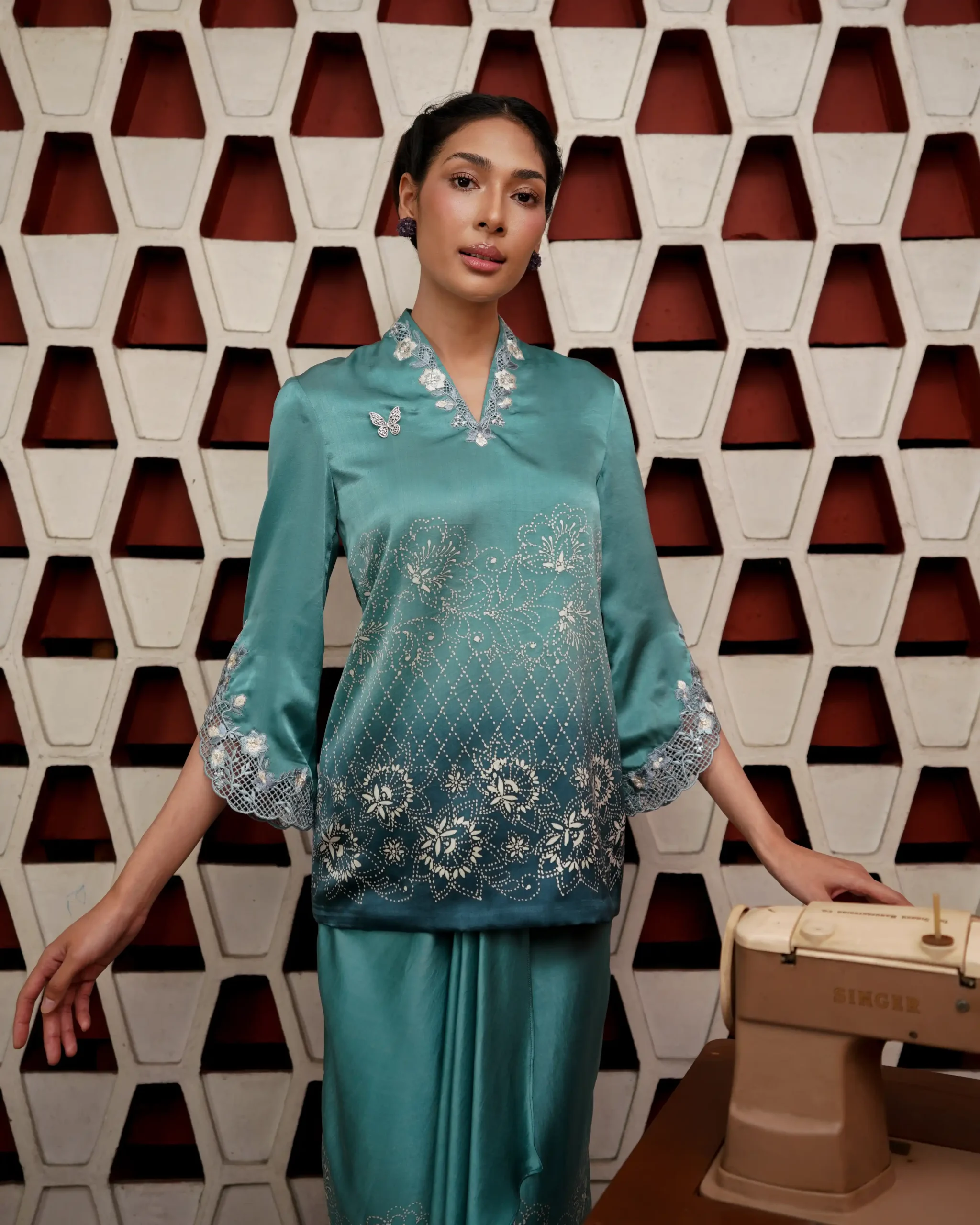 Batik Kedah Lace Design In Teal