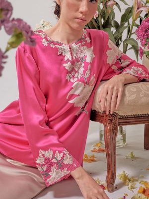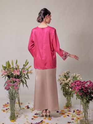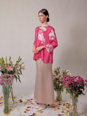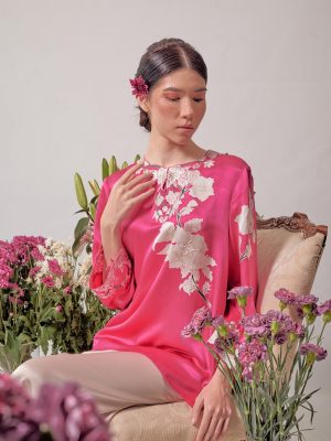 Hand painted magnolia flower batik in fuschia pink made of satin sillk.