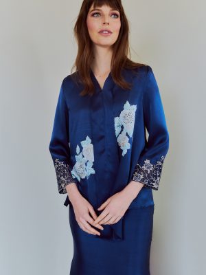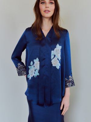 Details: Loose Kebaya top paired with mermaid skirt. 100% Silk. Hand-painted silk and Sulam Goyang. Care Instructions: Dry Cleaning only
