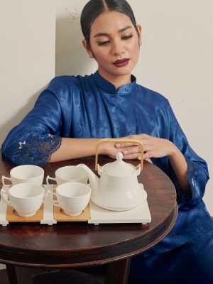 Maharani is made of emboss silk, traditional mandarin collar, with batwing cutting – with all the comfort, ease and simplicity that are the hallmarks of Merah Jambu.