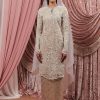 We love experimenting with textures, songket and lace. The stunning padded shoulder and statement songket.